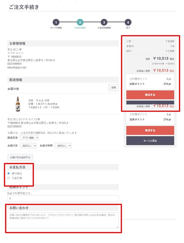また、ご注文内容とご入金の確認をし